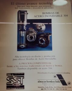 Se hace contrato de distribución con Goulds Pumps hoy Xylem y con Tuthill actualmente IR.